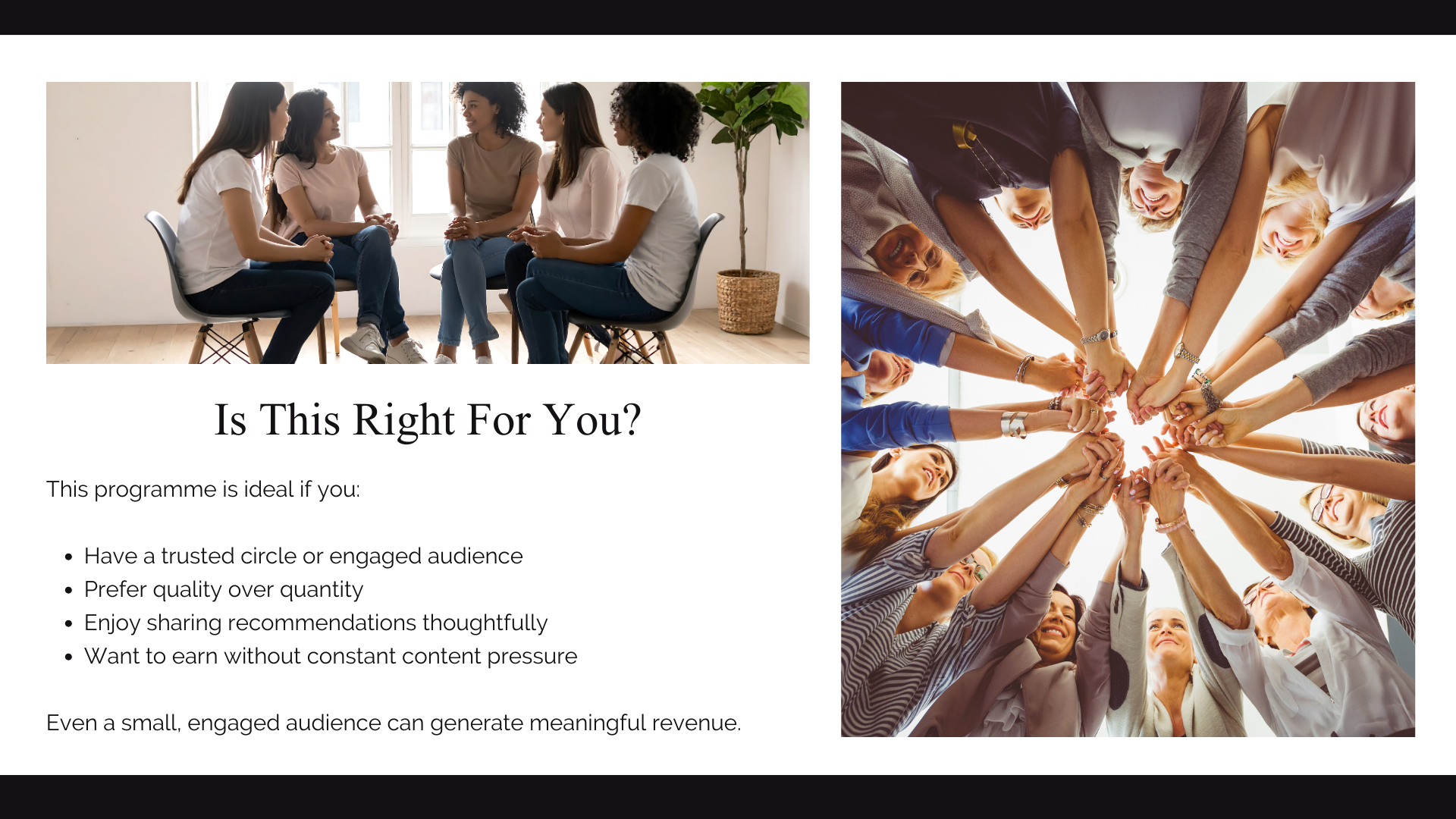 Share thoughtfully. Earn simply. Stay uninterrupted.